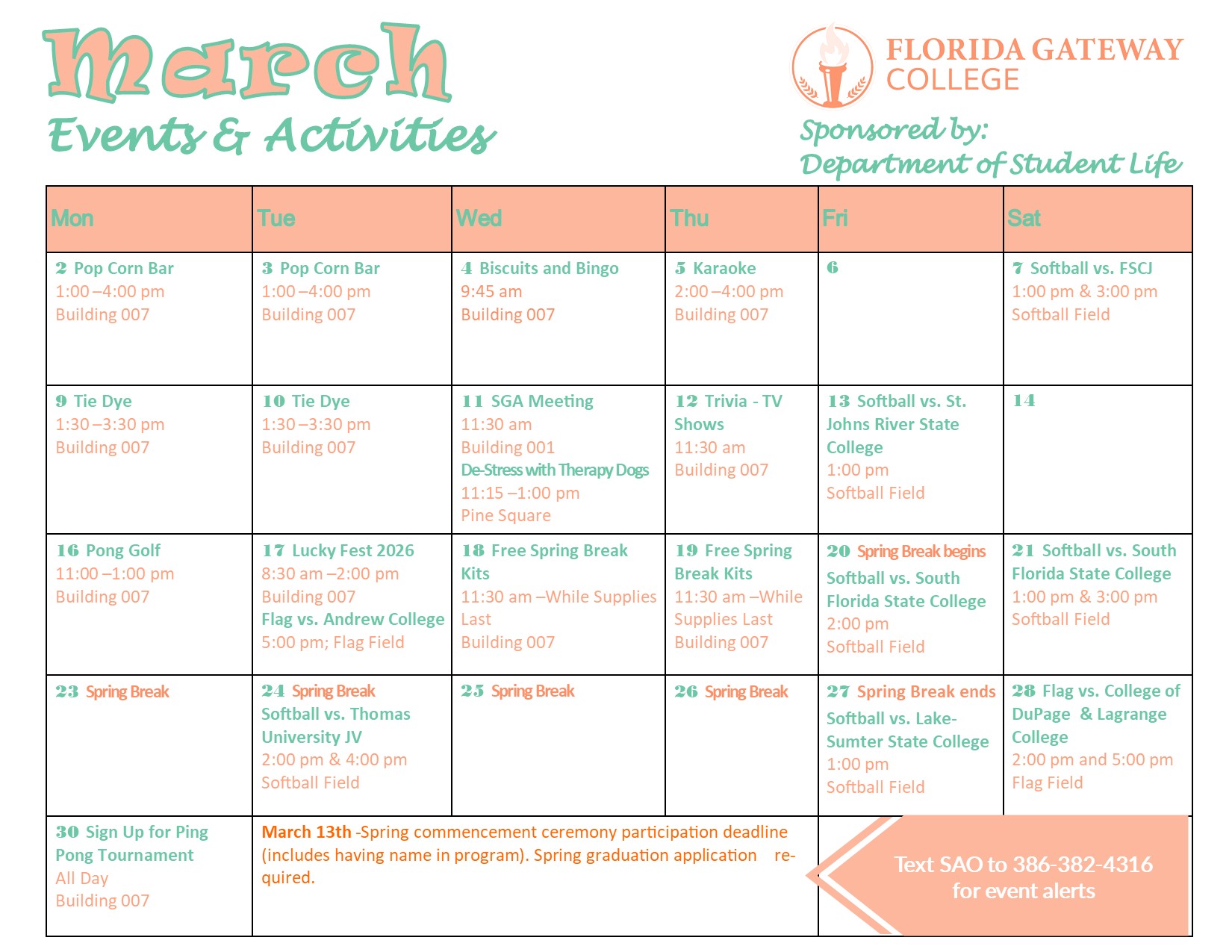 Florida Gateway College offers a variety of activities and events to keep students engaged and connected. We pride ourselves in making each of our students feel at home. From games in the student center to career fairs and cultural events, there is always something to do at FGC. So, experience FGC beyond the classroom. Get involved. Have some fun. Become a leader. Opportunities abound.
